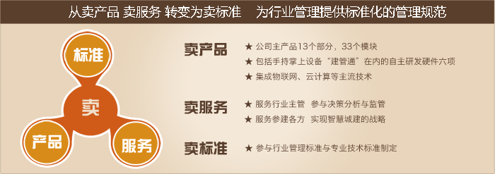 從賣產(chǎn)品 賣服務(wù) 轉(zhuǎn)變?yōu)橘u標(biāo)準(zhǔn) 為行業(yè)管理提供標(biāo)準(zhǔn)化的管理規(guī)范